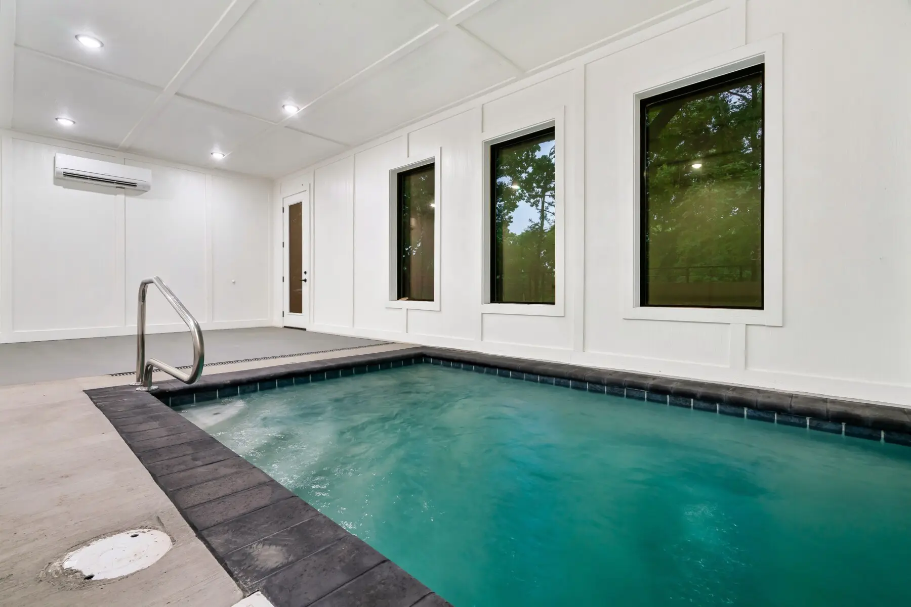 Nestled amidst the mountains, this opulent 5-bedroom cabin design is now available for bookings, offering a rare blend of rustic elegance and modern luxury. Expansive windows frame breathtaking natural views, filling the grand living space with serene beauty. A large fireplace and plush furnishings create a warm and inviting atmosphere, while the full kitchen is perfect for culinary creations. Each bedroom is designed for ultimate comfort, and the property features an indoor pool and a hot tub for relaxation under starlit skies. This extraordinary mountain retreat could be your sanctuary—don’t miss the opportunity to experience mountain luxury!