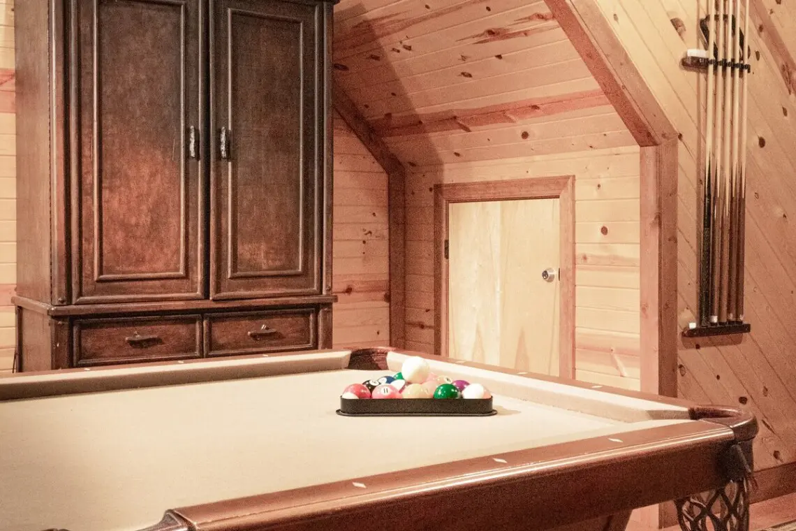 Another highlight is the cabin’s indoor jacuzzi tub, which provides the perfect spot to unwind after a day of exploring the Smokies. Whether you’re soaking in the hot tub, watching a movie by the fireplace, or enjoying a friendly game of pool, this cabin offers everything you need for a fun and stress-free vacation.
