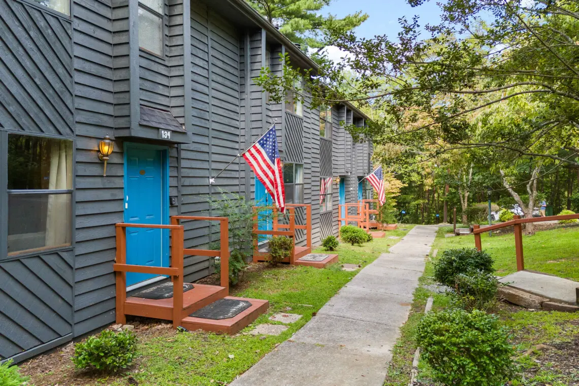 Getting here is a breeze with well-maintained roads that offer scenic views of the Smoky Mountains, making your drive as enjoyable as your stay. The complex sits atop a steep hill, so while access is smooth year-round, we do recommend a 4WD vehicle during the winter months for added ease.