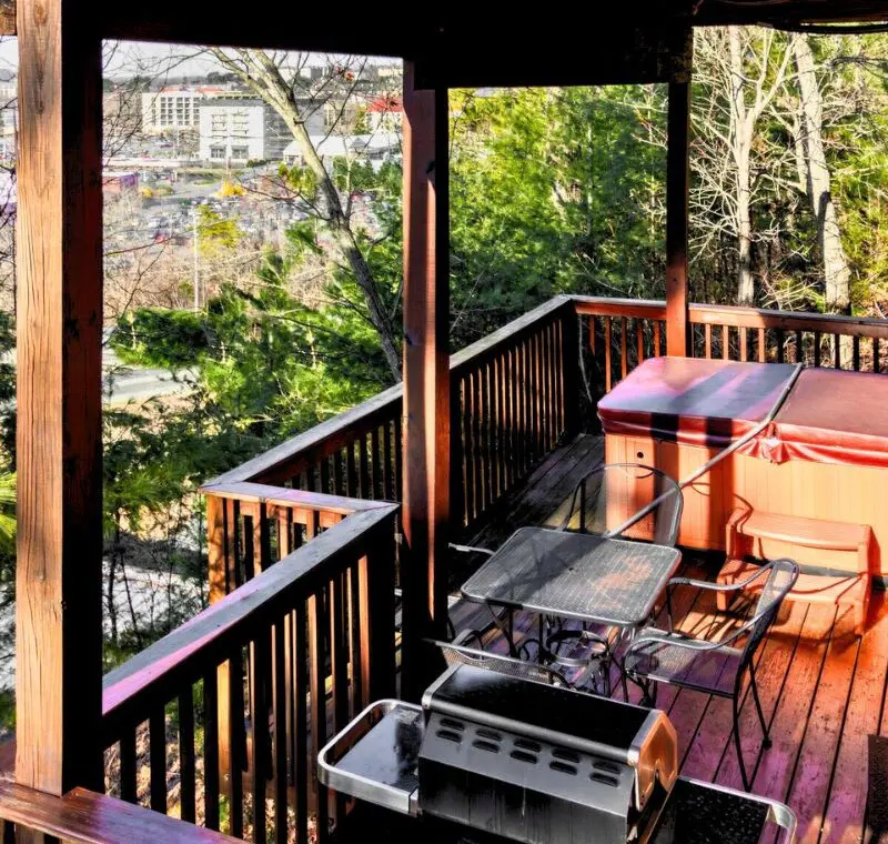 Escape to our cozy cabin retreat in the heart of Pigeon Forge, just one mile from top Smoky Mountain attractions! Unwind in the private hot tub, fire up the BBQ grill, or relax by the indoor fireplace. Enjoy scenic views from the deck, a king bed, sofa bed, Roku Smart TV, and a fully stocked kitchen. With high-speed WiFi and resort perks like pools, hot tub, gym, and game room, your perfect Smoky Mountain getaway starts here. Book now for the ultimate Pigeon Forge vacation!