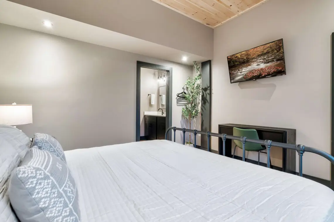 Head downstairs to find three beautifully appointed bedrooms, all designed for rest and rejuvenation. Each room features premium linens, cozy bedding, and easy access to nearby bathrooms—so you’ll never wait to refresh after a long hike in the mountains or a day exploring nearby Gatlinburg, Pigeon Forge, or Dollywood.