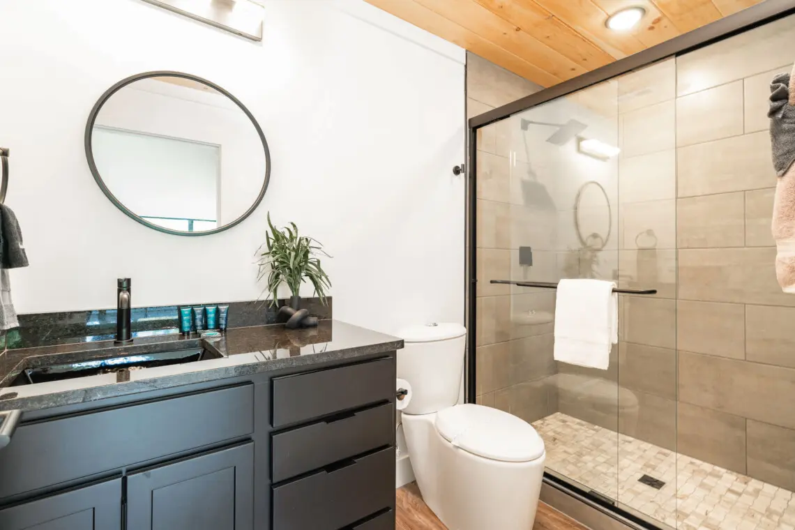 Each cabin features 4 bedrooms: one with a King bed, two with Queen beds, and two with twin-over-bunk beds. Bathrooms are conveniently paired with bedrooms to ensure no waiting after a day of adventure.