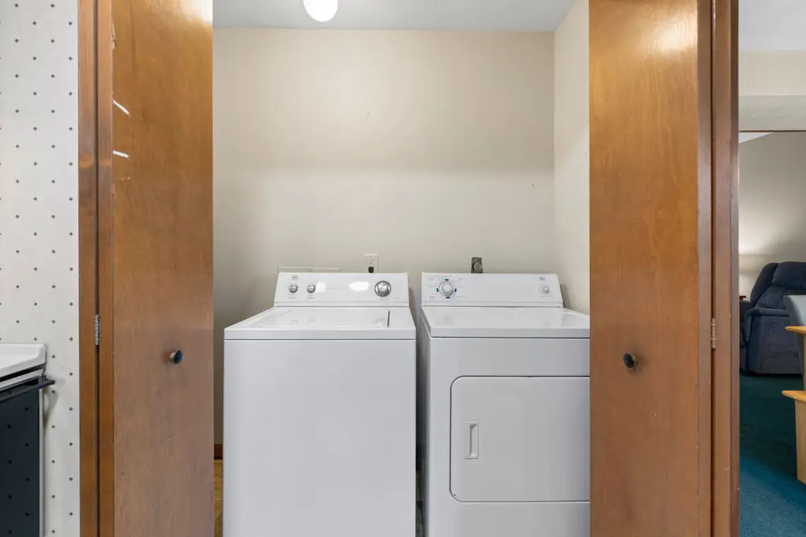 This fully equipped kitchen has everything you need for a stress-free stay. Modern stainless steel appliances, a full-sized stove and oven for home-cooked meals, a dishwasher for easy cleanup, and a coffee maker to kickstart your mornings. You’ll also find cookware, dishes, and silverware ready to use. Enjoy meals at the dining table with seating for six, perfect for gathering with family or friends.
