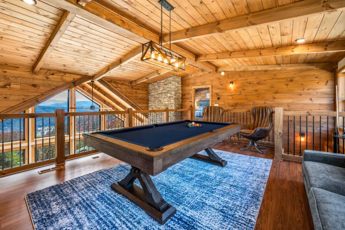 Escape to Autumn Ridge Way, your ultimate Smoky Mountains retreat where seclusion, relaxation, and panoramic mountain views meet luxury and comfort. Unwind in the private hot tub, take a dip in the indoor pool, or enjoy the private movie theater. With a cozy fireplace, PS4, arcade games, pool table, and board games, there’s fun for all ages. Cook in the fully equipped kitchen, relax on the spacious deck, and sleep up to 11 guests in comfort, all just minutes from Pigeon Forge and Gatlinburg!