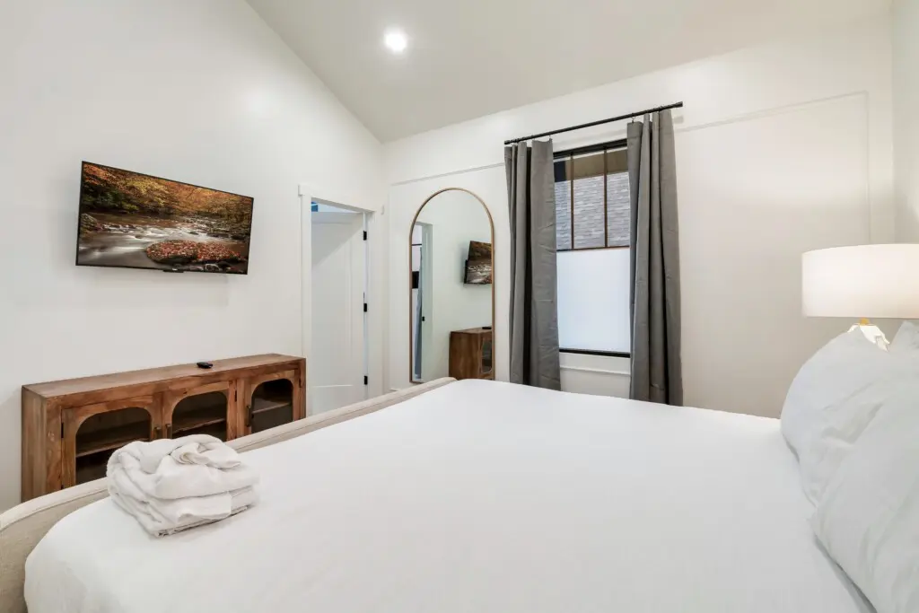 ☀︎ Bedroom 8 (main floor): King-sized bed, flat screen TV