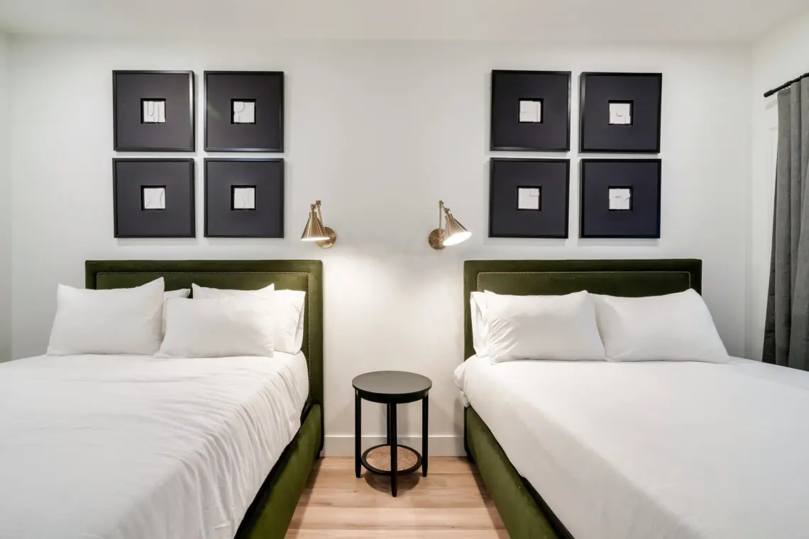 ☀︎ Bedroom 7 (main floor): 2 queen-sized beds, flat screen TV + ensuite bathroom