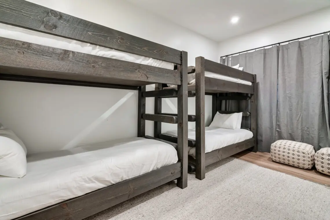 ☀︎ Bedroom 4 (top floor): 2 twin-over-twin bunk beds, flat screen TV
