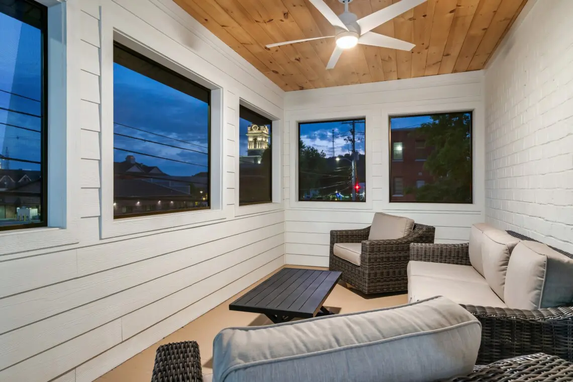 🎑 Screened-in porch overlooking Court Avenue + hanging egg chairs